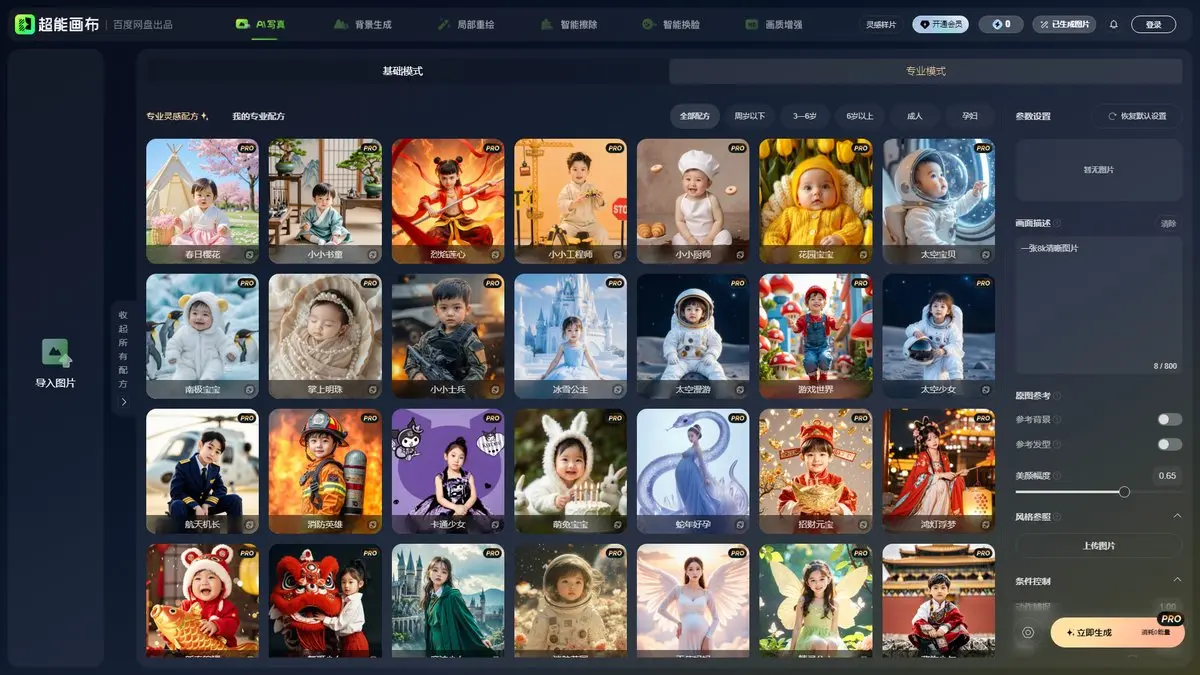 技术特点: 平台利用百度自研的图像处理大模型和智能人脸融合算法,允许用户通过上传一张照片并输入简短的文字指令,快速生成具有专业质感的AI写真。超能画布能够实现批量更换背景、服装,并支持对人物表情、发色等细节进行局部调整,极大地简化了传统摄影和后期制作流程。