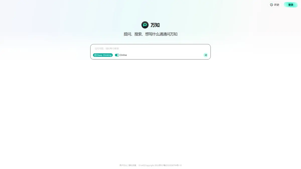 零一万物推出的一站式AI工作平台,提问、搜索、想写什么通通问万知