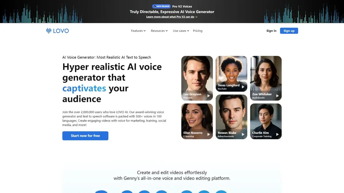 LOVO.ai作为一个综合性的AI语音生成平台,在多语言支持、功能集成度和性价比方面表现突出。其最大亮点是将语音生成、视频编辑、AI写作和图像生成整合在单一平台内,为内容创作者提供了完整的工作流程解决方案。