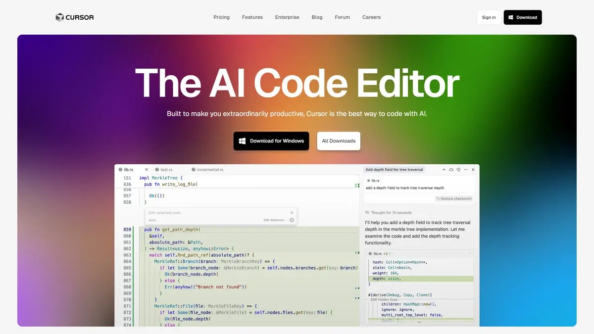 评分理由:Cursor凭借其革命性的AI编程体验、强大的技术实力和出色的用户反馈,已成为当前市场上最优秀的AI代码编辑器之一。尽管价格较高,但其提供的价值和效率提升完全值得这个投资。特别适合追求高效开发体验的专业开发者和团队。