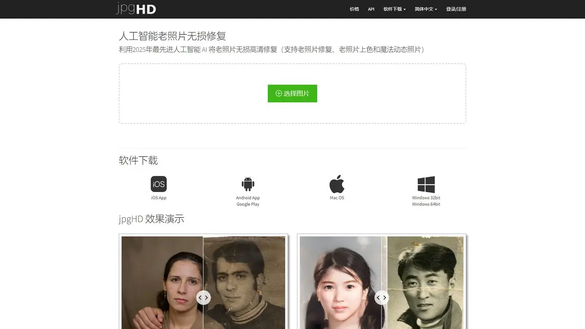 jpgHD是一款利用2025年最先进的人工智能技术进行老照片修复的工具,能够帮助用户无损地将破损、模糊的老照片恢复为高清、精美的图像。其核心亮点在于只有jpgHD.com准确还原出了周董的单眼皮以及内眼角细节,在我看来它是最像图片最初模样的细节还原能力,以及支持老照片上色和魔法动态照片的生成,为用户带来了更具创意和情感的数字化修复体验的独特功能组合。